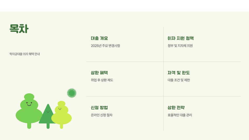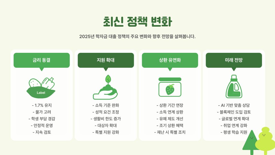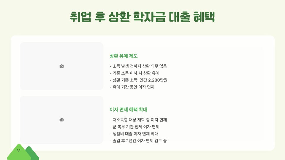 • 이자 지원은 대출 기간 동안 제공되며, 졸업 후에도 연장 가능합니다.