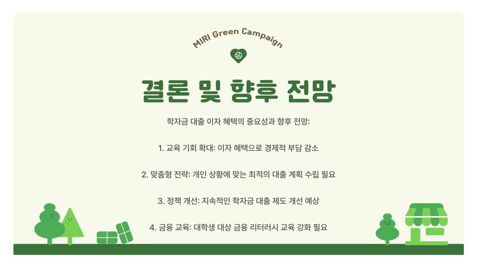 이처럼, 학자금대출의 이자 혜택을 잘 활용하여 졸업 후의 경제적 부담을 줄이는 것이 중요합니다. 충분한 정보와 계획을 통해 학생들은 더 나은 재정적 미래를 설계할 수 있습니다.