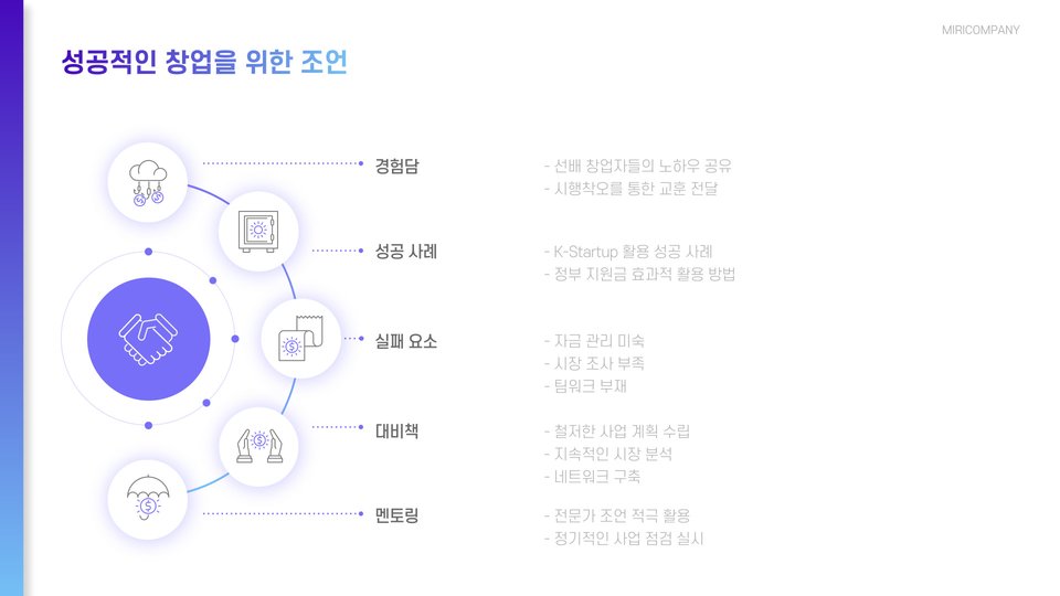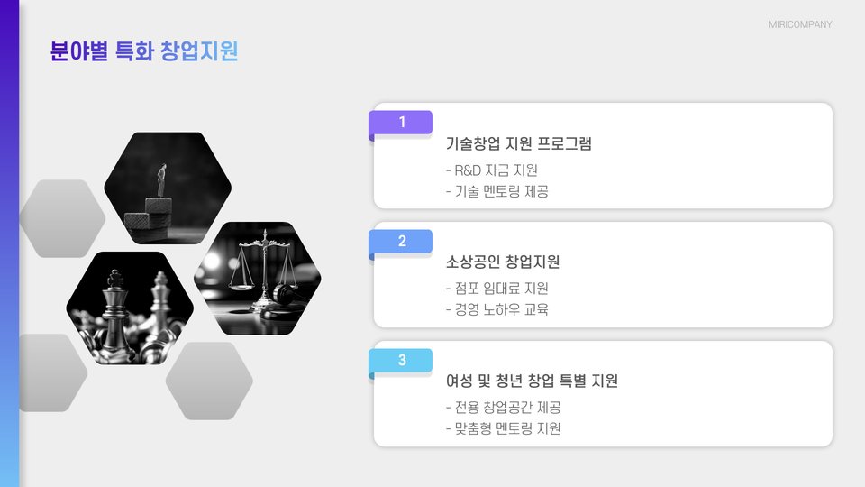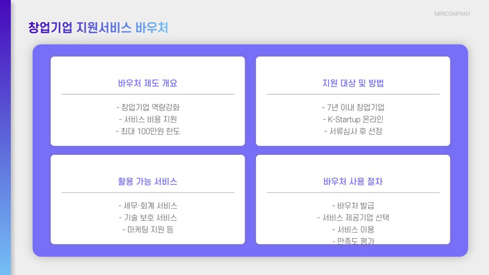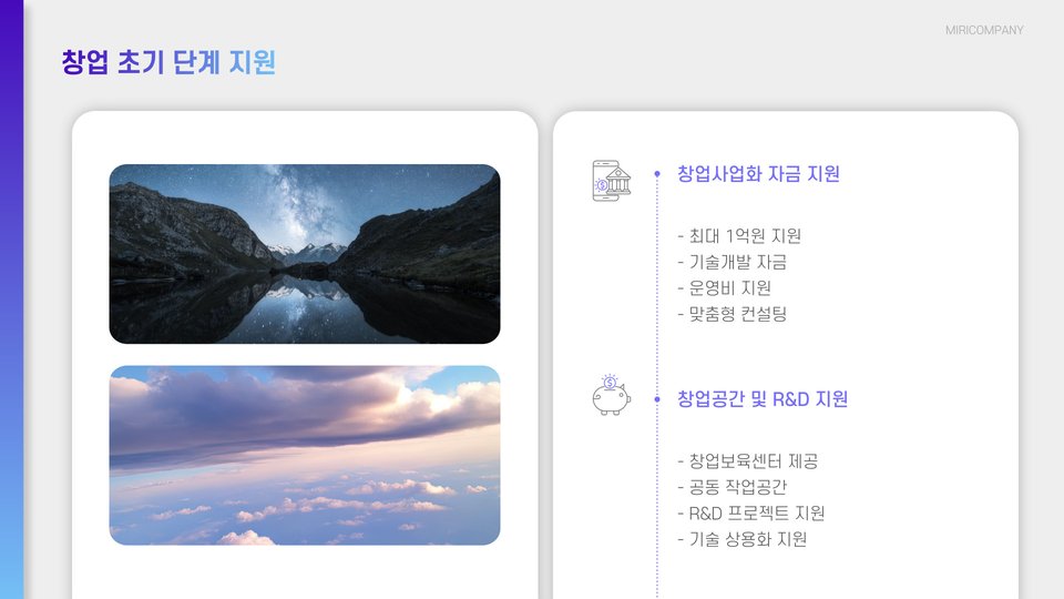 - 자금 지원 프로그램을 통해 초기 자금을 조달할 수 있다.