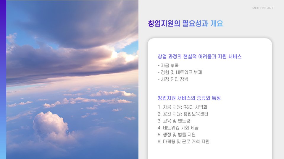 - 창업지원은 자본 부족 해결에 도움을 줌
