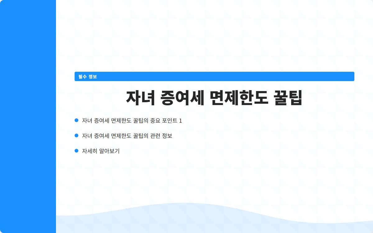 2024년부터 적용되는 자녀 증여세의 면제한도가 1억 원으로 증가했습니다. 이는 자녀에게 자산을 물려주고자 하는 부모들에게 큰 변화입니다.