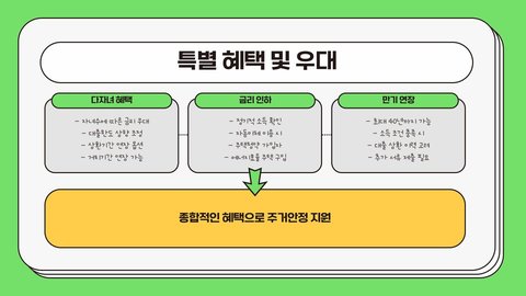 신생아 특례대출의 가장 큰 혜택 중 하나는 재정 부담 완화와 안정적인 가정 환경 조성입니다. 부모가 신생아의 출산과 초기 양육에 필요한 자금을 마련할 수 있도록 도와주는 것 외에도, 대출 조건이 비교적 유연하여 다양한 상황에 맞출 수 있습니다.